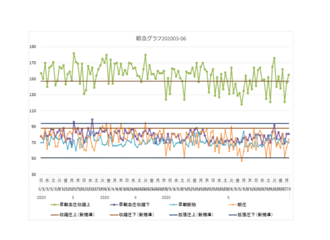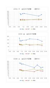 毎日の血圧を記録する。血圧測定時刻と上・下の血圧および脈拍を記録。定時測定として,朝7時,正午,夕7時はできるだけ測定(前後30分以内にに測定)。他に1日に数回測定。特に,私は早朝高血圧症らしいので,起床20分過ぎにも測る(早朝血圧)。