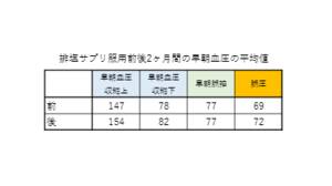 表4-2 排塩サプリ服用前後2ヶ月間の早朝血圧の平均値