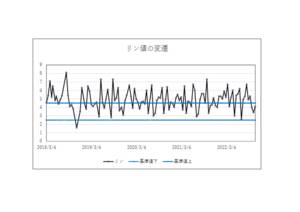 血液検査のリン(無機リン)値の適正範囲は2.5~4.5 mg/dLである。「リン値の変遷」のグラフから,最近の状況は,リンは少し高めになっている。管理栄養士さんからは,私のリンの管理は比較的うまくいっているとのことである。基準範囲から大きくずれて困っている患者さんいるとのことであった。これは個人差が大きいらしい。