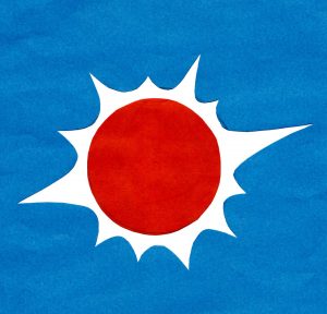 何年か前に,テレビでフランスの撮影クルーがとらえた砂漠の太陽をみたが,コロナがはっきり映っていて,その撮影技術とコロナが広がる姿にびっくりした。コロナは肉眼では見えない。その時の印象から,ロゴマークをつくった。